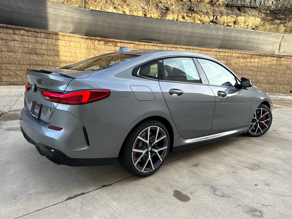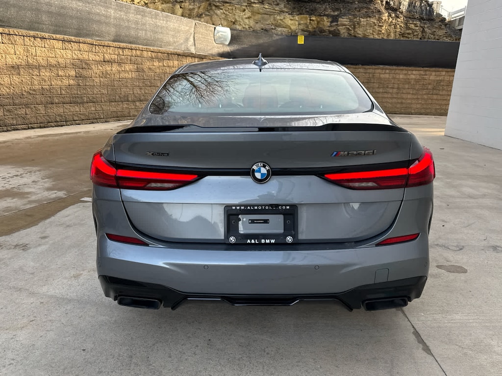 Adaptive Full LED Lights, Large CID Screen, Head-Up Display, Heated Steering Wheel, Universal Garage Door Opener, Heated Front Seats, Wireless Charging, WiFi Hotspot, complimentary 3-month or 3GB trial, PANORAMIC MOONROOF, M Sport Brakes w/Red Calipers, Wheels: 18 x 8.0 M Forged V-Spoke, Style 554M, Extended Shadowline Trim, Black Mirror Caps, M Performance Package (7ML), 7ML adds overboost function and lightweight forged wheel 1Y1/1Y0 for greater performance and dynamics, Kidney, mirrors, rear spoiler and exhaust tips are all in black, REMOTE ENGINE START, (STD). BMW M235i xDrive with Skyscraper Grey Metallic exterior and Magma Red interior features a 4 Cylinder Engine with 301 HP at 5000 RPM*.