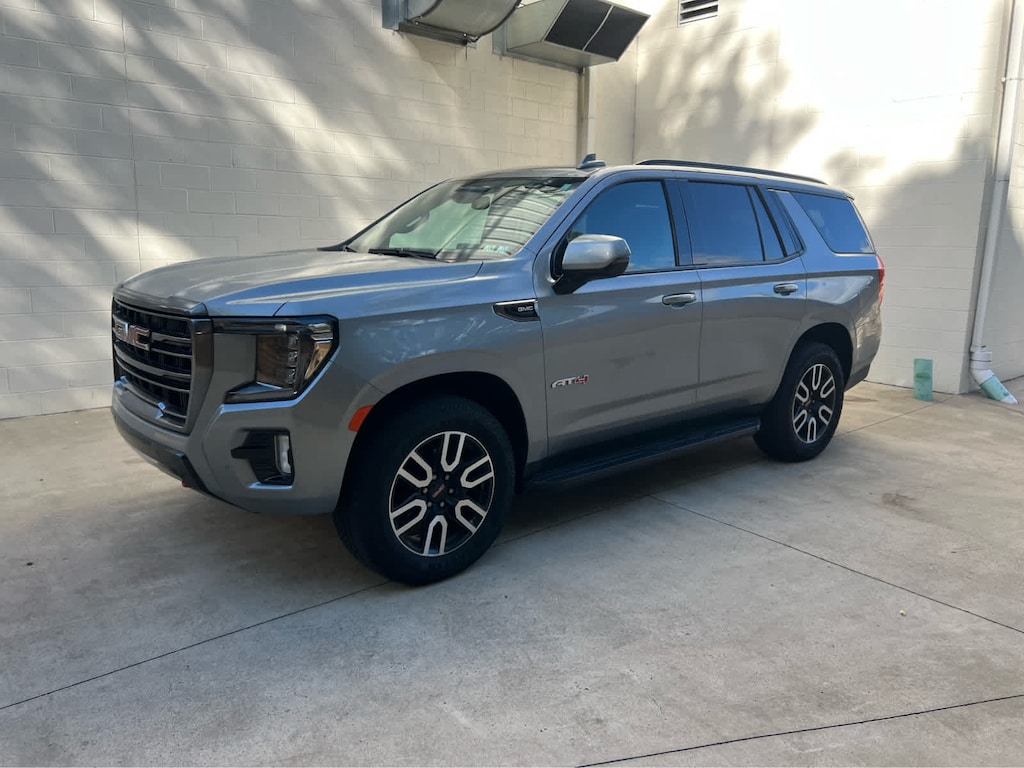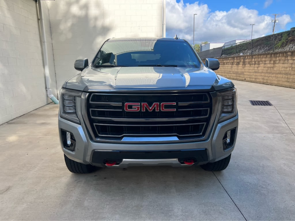 SUNROOF, POWER PANORAMIC, DUAL-PANE tilt-sliding with express-open and close and power sunshade, SEATS, SECOND ROW BUCKET, POWER RELEASE, AUDIO SYSTEM, 10.2 DIAGONAL PREMIUM GMC INFOTAINMENT SYSTEM WITH GOOGLE BUILT-IN includes color touch-screen, multi-touch display, AM/FM stereo, Bluetooth® streaming audio for music and most phones; featuring wireless Android Auto® and Apple CarPlay® capability for compatible phones, advanced voice recognition, in-vehicle apps, personalized profiles for infotainment and vehicle settings (STD), ENGINE, 5.3L ECOTEC3 V8 with Dynamic Fuel Management, Direct Injection and Variable Valve Timing, includes aluminum block construction (355 hp [265 kW] @ 5600 rpm, 383 lb-ft of torque [518 Nm] @ 4100 rpm) (STD), TRANSMISSION, 10-SPEED AUTOMATIC electronically controlled with overdrive, includes Traction Select System including tow/haul (STD). GMC AT4 with STERLING METALLIC exterior and JET BLACK interior features a 8 Cylinder Engine with 355 HP at 5600 RPM*.