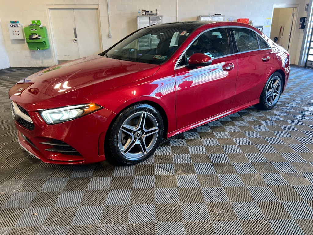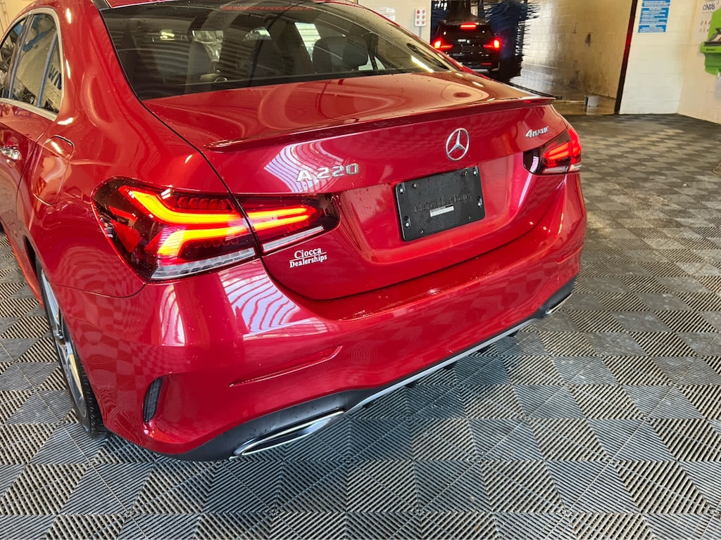AMG® LINE silver louver w/inlays in chrome, Floor Mats in Black w/AMG® Inscription, Black Headliner, AMG® Body Styling, Diamond-Block Grille, chrome pins and silver louvre w/chrome inlays, Brushed Stainless Steel AMG® Sport Pedals, rubber studs, PREMIUM PACKAGE Mirror Package, Power Folding Side Mirrors, Auto-Dimming Rearview & Driver-Side Mirrors, 10.25 Media Display w/Touchscreen, 10.25 Digital Instrument Cluster, Keyless GO® Package, Keyless GO®, Hands-Free Access, Burmester® SURROUND SOUND SYSTEM, HEATED FRONT SEATS, SIRIUSXM RADIO free trial period, GARAGE DOOR OPENER, HEATED STEERING WHEEL Multifunction Steering Wheel in Leather, touch control buttons and shift paddles. Mercedes-Benz A 220 with Patagonia Red Metallic exterior and Black MB-Tex with Dinamica interior features a 4 Cylinder Engine with 188 HP at 5800 RPM*.